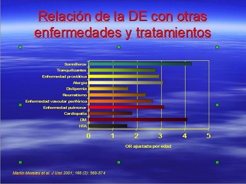 Asimismo, los datos de varias investigaciones apoyan una relación entre la disfunción eréctil y otras enfermedades de elevada prevalencia en atención primaria como cardiopatía, hipertrofia benigna de próstata, reumatismo, ansiedad, depresión y enfermedades vasculares y pulmonares.